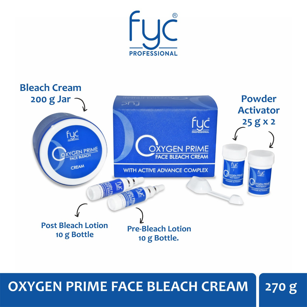 FYC Professional Oxygen Prime Face Bleach Cream with Active Advance Complex (540g Combo) is an advanced skin-brightening solution formulated to gently lighten facial hair and even out your skin tone. Infused with the powerful Active Advance Complex, this professional-grade bleach not only enhances your complexion but also delivers anti-ageing benefits by reducing fine lines, wrinkles, and pigmentation. It effectively blends facial hair with your natural skin tone, offering a smoother, brighter, and more youthful appearance with every use.